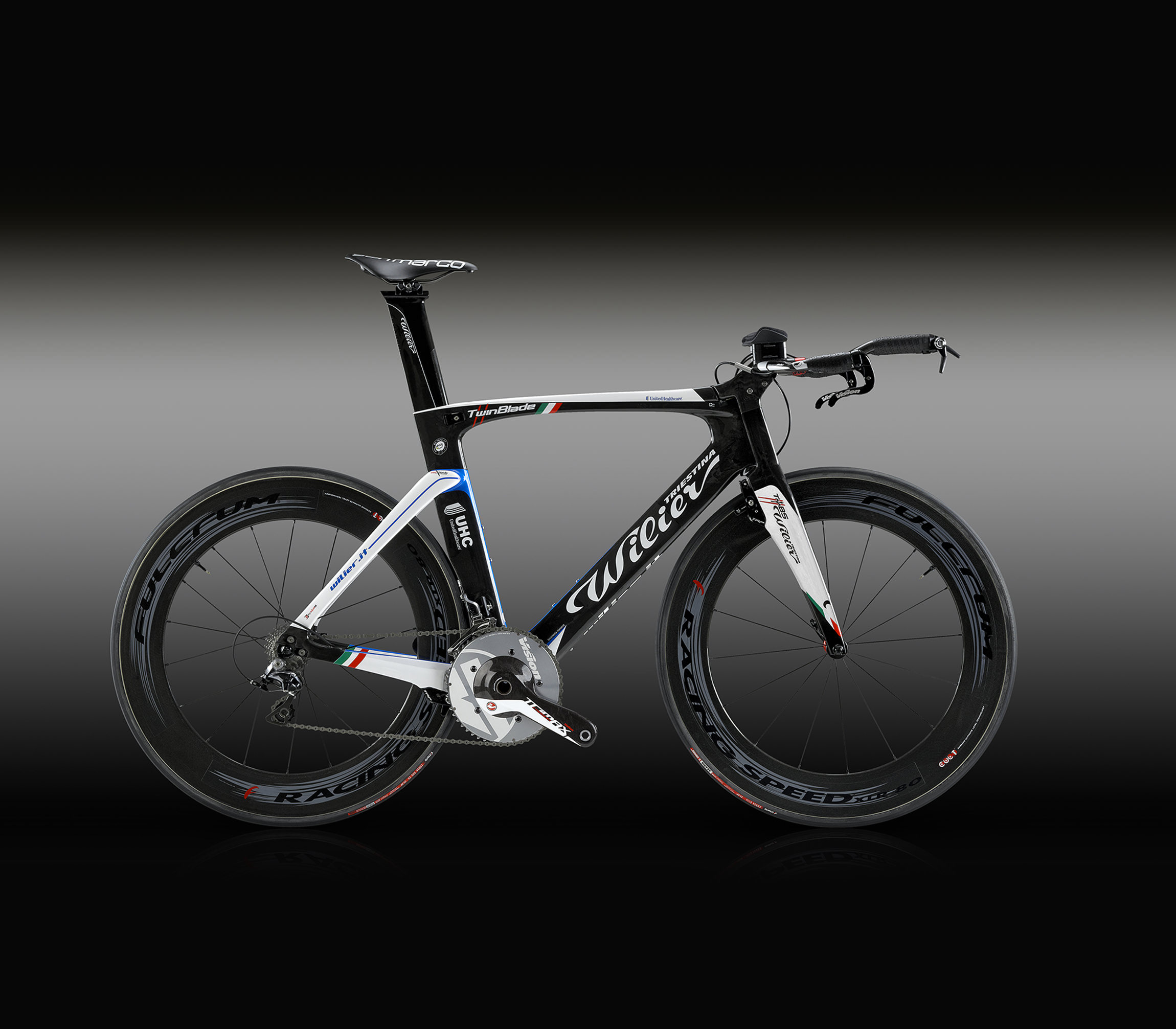 A differenza di molti telai da cronometro che utilizzano dei forcellini orizzontali (tipo pista) per modulare la distanza tubolare-tubo piantone, TwinBlade è dotato di forcellini ad innesto verticale. Questo importante dettaglio è stato studiato in collaborazione con gli atleti e i tecnici del Team Lampre per soddisfare da un lato l’esigenza di una regolazione ottimale, dall’altra quella di un’agevole estrazione e sostituzione della ruota.